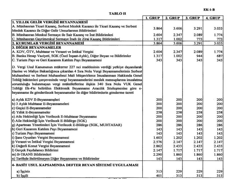 Söz konusu tarife; defter tutma, beyanname düzenleme, danışmanlık ve benzeri muhasebe hizmetleri için uygulanabilecek asgari ücret sınırlarını belirliyor. Bu tutarların altında ücretlendirme yapılması mevzuata uygun kabul edilmiyor.