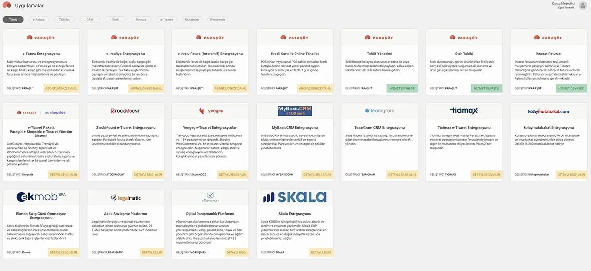 1. Paraşüt hesabınız içerisinde yer alan UYGULAMALAR sayfasından eDanışman seçeneğini seçiniz.