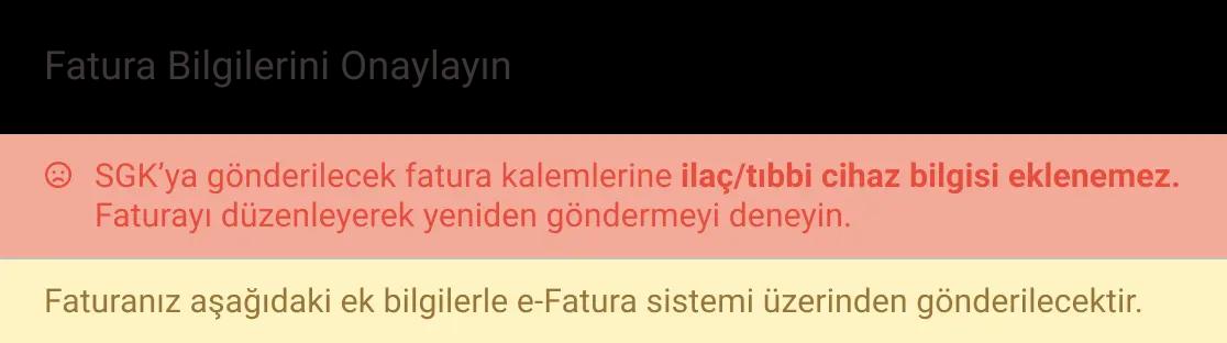 Hayır SGK’ya (VKN: 7750409379) kesilen faturalarda İlaç ve Tıbbi Cihaz bilgisi eklenemez. Bu durumda Paraşüt sistemi sizin faturayı resmileştirmenin son adımında izin vermeyecektir.