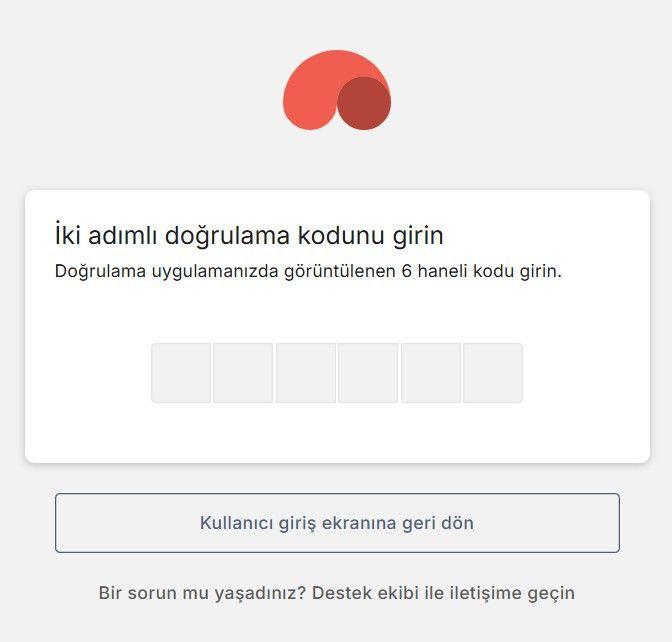 2- Açılan ekranda, kimlik doğrulama uygulamanızdaki 6 haneli kodu girin.