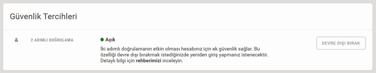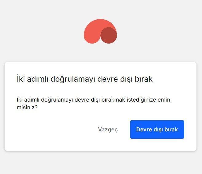 7- İki adımlı doğrulamayı devre dışı bırakmanız için onayınız gerekmektedir. "Devre Dışı Bırak" butonuna basarak bu güvenlik özelliğini kapatabilirsiniz.