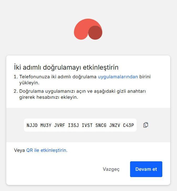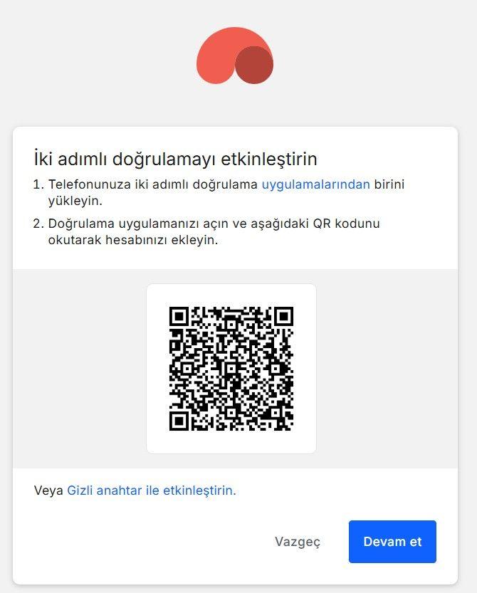 QR kodu tarayamıyorsanız “Gizli anahtar ile etkinleştir” seçeneğini kullanabilirsiniz.
