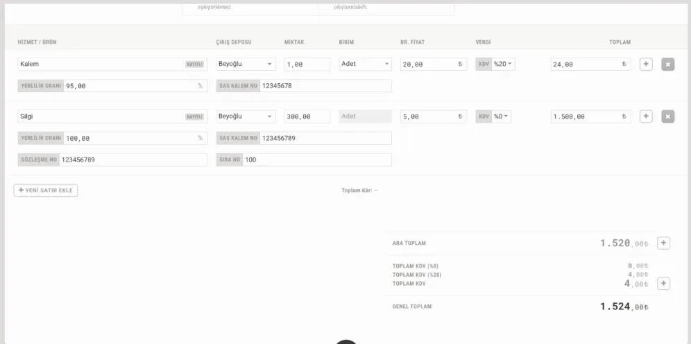 Faturaya dair bilgiler tamamlandıktan sonra faturanızı kaydedebilirsiniz.