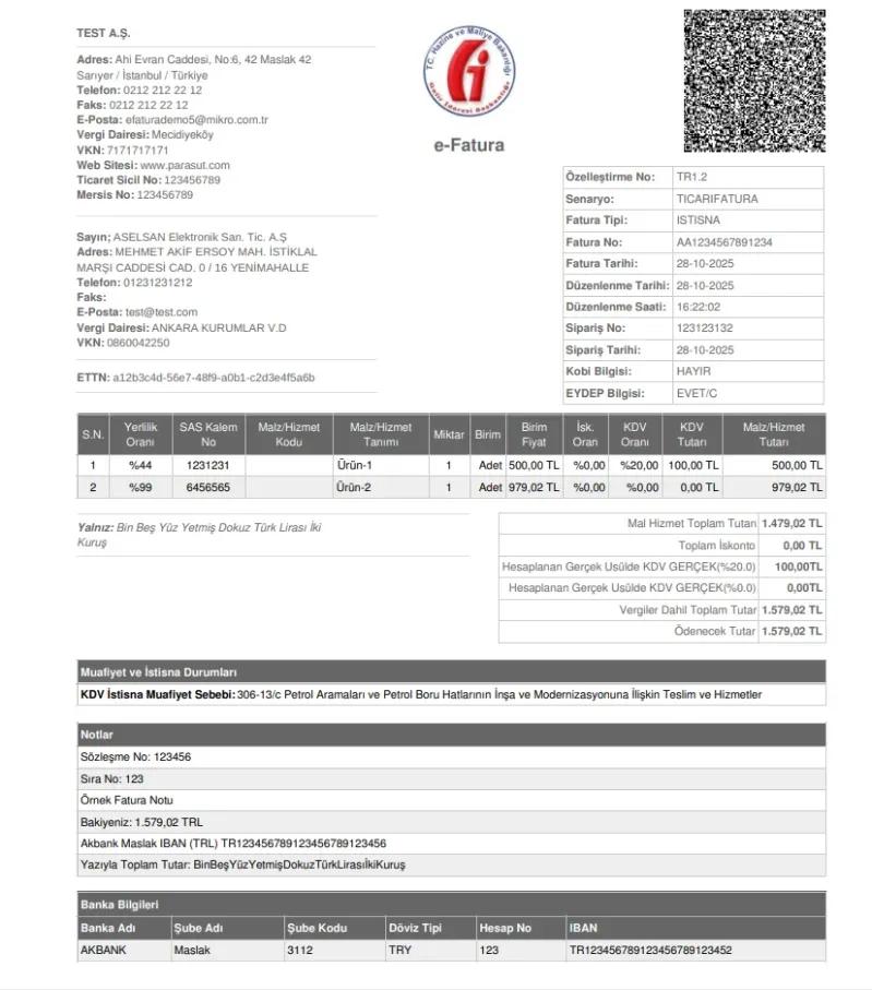 ASELSAN faturalarında, fatura PDF’i Paraşüt’teki standart faturalardan farklı bir formata sahiptir. ASELSAN’ın zorunlu tuttuğu bu özel fatura tasarımında logo yer almamaktadır ve logo eklenmesi mümkün değildir.